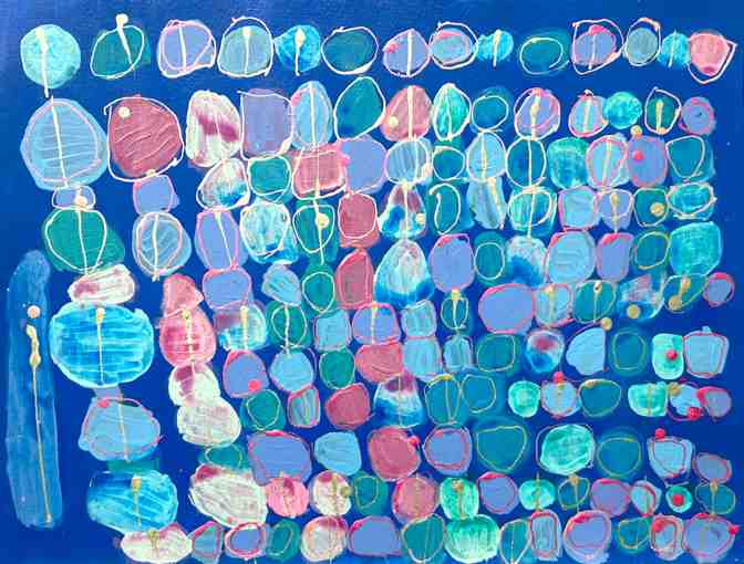 Circles and Letters in the Air, 2017, acrylic paint on paper, 12"x16"