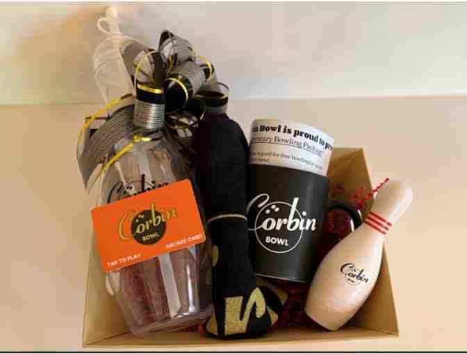 Two Games of bowling for up to Four (4) People with shoe rental and a pitcher of soda. Plus a mug, water bottle and bowling towel.