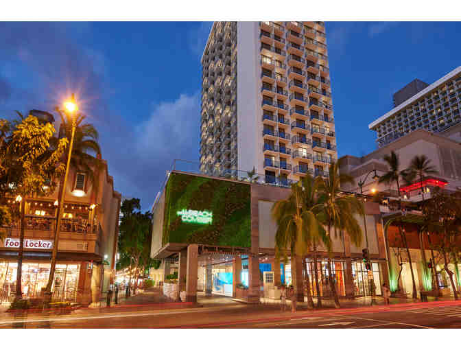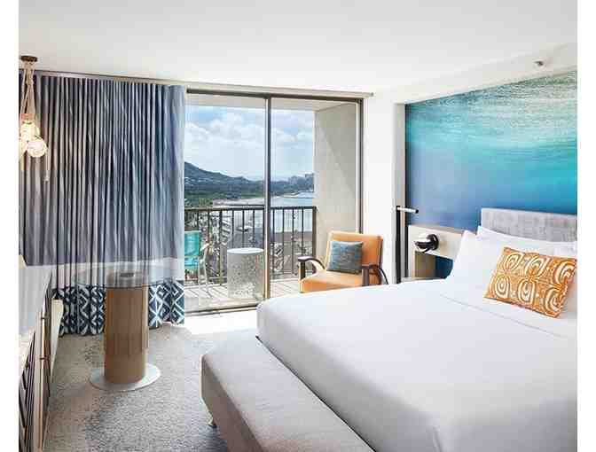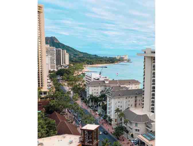Enjoy a 5-night stay for up to 4 guests in a Waikiki View room overlooking the city lights and palm-lined streets. Your King or two Queen beds room is 324 square feet with sliding floor-to-ceiling windows leading to a furnished balcony, a cozy sitting area, inviting décor.