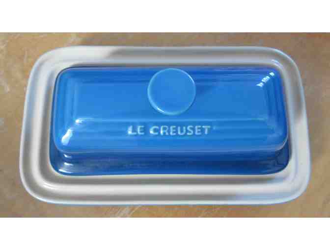 This Le Creuset Covered Butter Dish with a knob top is in the beautiful Cobalt Blue. This popular color has been discontinued — complete your set today!