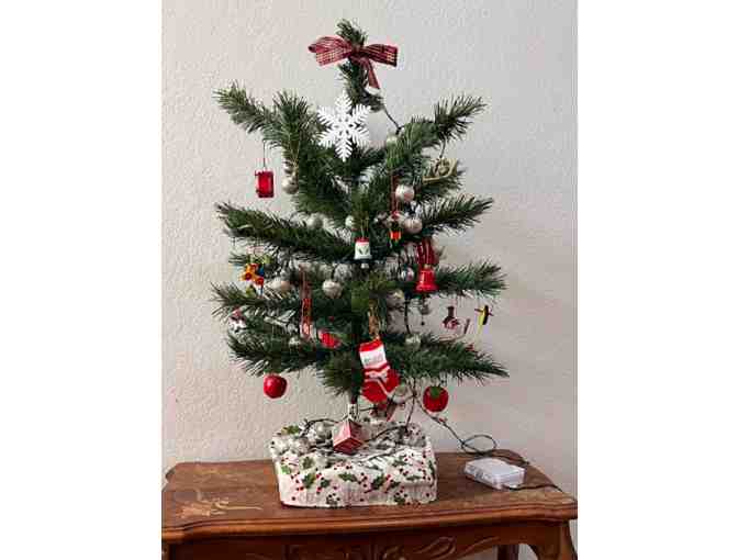 Look what Santa brought! This cute little tree, standing just 28 inches tall, is the perfect way to enjoy a collection of vintage miniature ornaments, approximately sized between 1 inch to 3 inches.