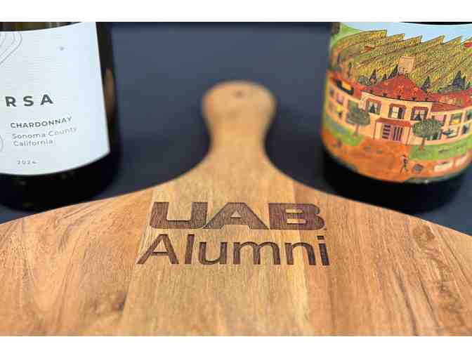 - A custom wooden charcuterie board emblazoned with the UAB Alumni logo perfect for showing school spirit while serving up style.