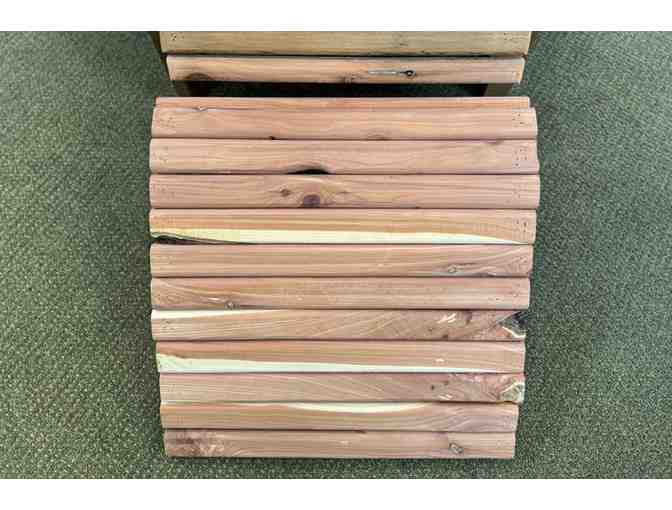 Add timeless charm and comfort to your outdoor space with this beautifully handcrafted cedar Adirondack chair and matching footrest. Crafted with solid cedar and expert attention to detail, this set features: