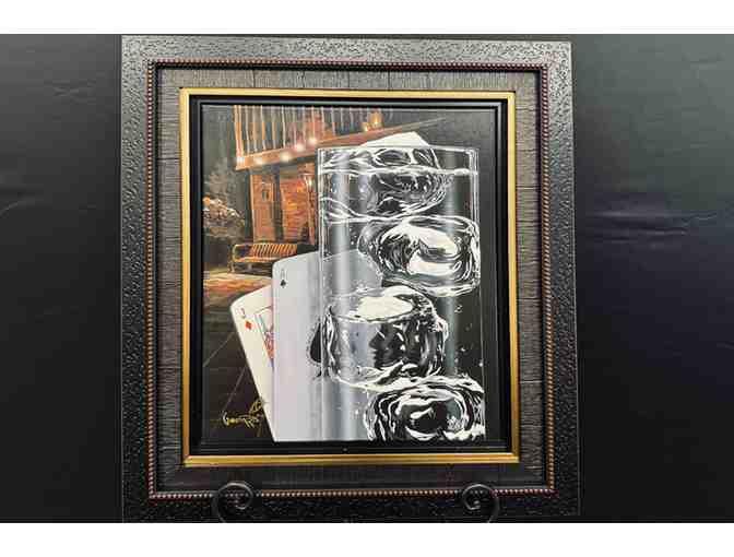 "This is an elegant gambling piece. The photo realism of the glass and the glistening of the ice cubes might even make you thirsty. Of course we have a winning hand and a great drink... Life is good!"