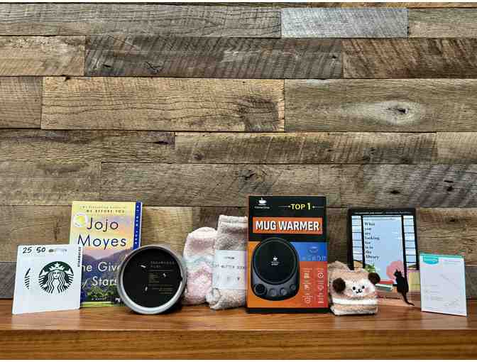 This basket is full of items to help you get cozy & comfy with a good book & a delicious coffee! Take time for yourself during this holiday season to refill your cup or to use as gifts for family & friends!