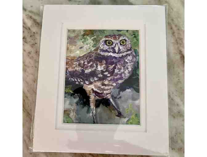 "Mini" Watercolor Painting of a Burrowing Owl