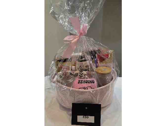 "There's No Such Thing as Too Many Books" "" tote bag and makeup bag; "I'm Reading" socks; "Off to the Races" Romance book by Elsie Silver; 2 - "Blind Date with a Book"; "Just 1 More Chapter" drinking glass with lid