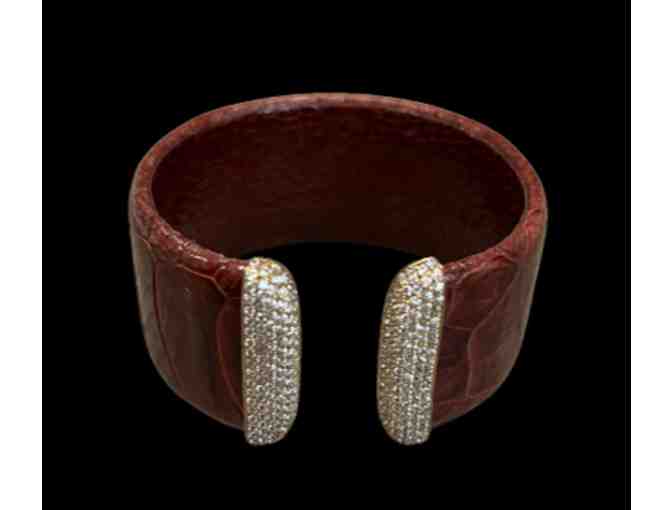 Genuine Alligator Bangle Bracelet with simulated diamonds