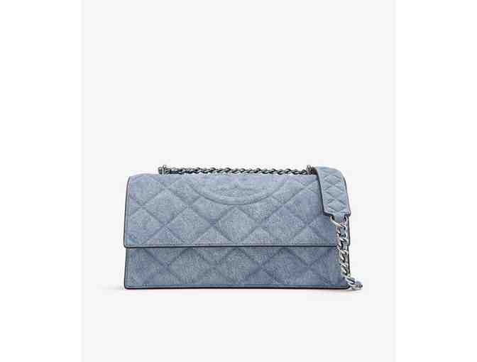 Tory Burch Fleming Denim-Print Suede Small Converitble Shoulder Bag