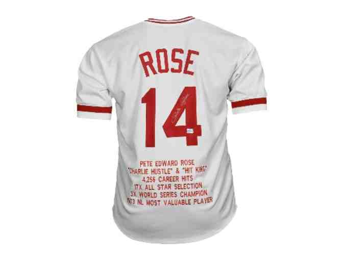 Pete Rose Hand Signed Stats Jersey
