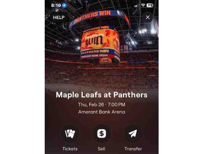 2 Tickets to see the Florida Panthers vs. Toronto Maple Leafs on Thursday, February 26 at 7:00 PM at Amerant Bank Arena, Section 328, row 9, seats 5 and 6; Photograph signed by #67 Brad Marchand; Panthers jersey water bottle koozie