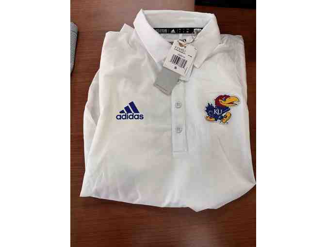 1 Men's White KU Polo and 1 Grey KU Golf T-Shirt both size small.