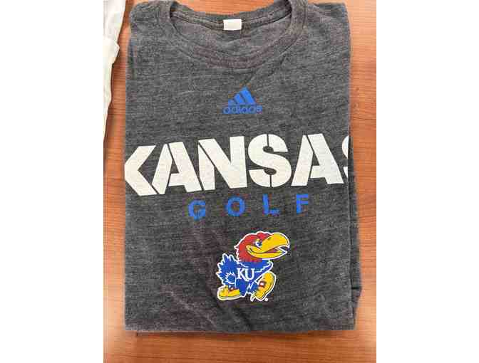 1 Men's White Small KU Polo and 1 Grey Small KU Golf T-Shirt