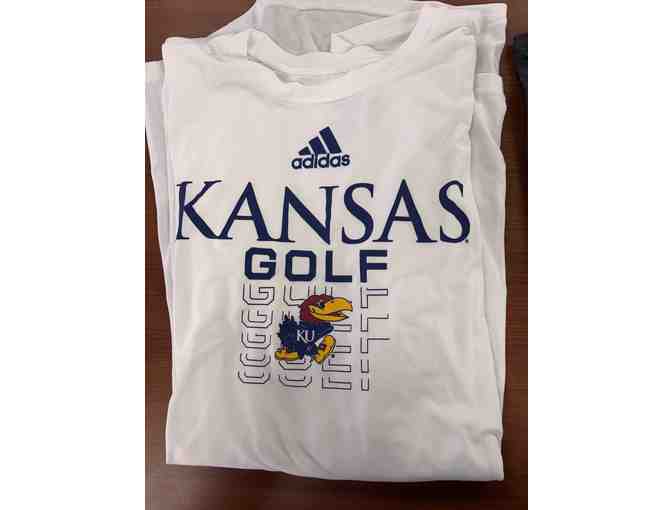1 White XL KU Long Sleeve Golf T-Shirt and 1 Jayhawk Headcover