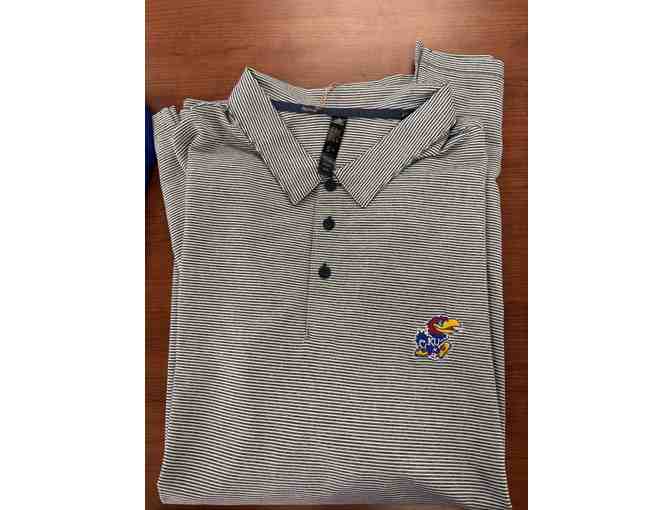 1 Men's Grey Striped XXL KU Golf Polo and 1 Jayhawk Headcover