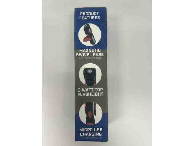Product Features - Magnetic Swivel Base, 3 Watt Top Flashlght, Micro USB Charging, 10 Watt COB light, Swivel hook, usb output