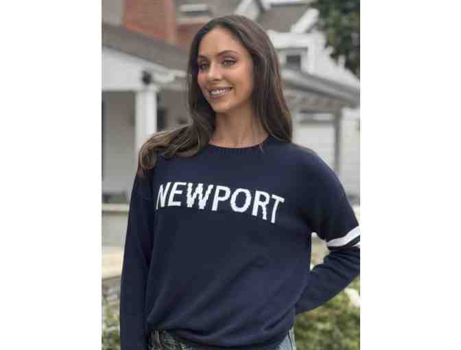 Our Newport sweater blends classic style and every day comfort with a coastal spirit! Crafted from 100% premium cotton, this navy colored sweater displays NEWPORT on the front in an effortless way to celebrate your love for an iconic town or show your Newport Harbor High School spirit. A clean white striped detail down the back gives it an understated look that is perfect for a beach stroll, crisp mornings or cheering from the sidelines!