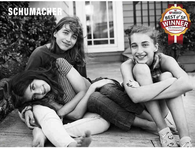 The winning certificate includes: - Creative Consultation to get to know one another and tailor an inspiring session that is personal to your family. - Weekday Photography Session at your home or meaningful location. - Presentation at Eric's studio to personally review your images and curate the perfect photographic collection for your home. - A Museum Quality, Black & White Photograph matted to 16x20 inches or a $500 print credit to be used towards a larger photograph. See more of Eric's distinctive family portraits at http://www.schumacherphotography.com and reviews on YELP.