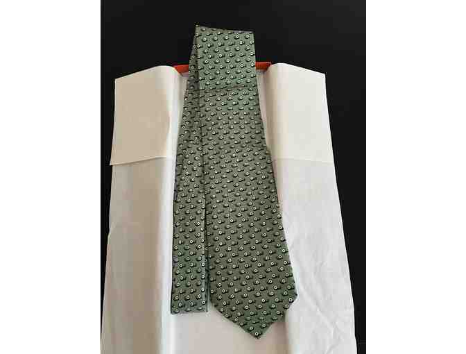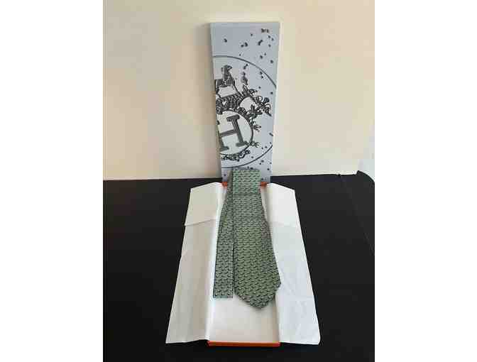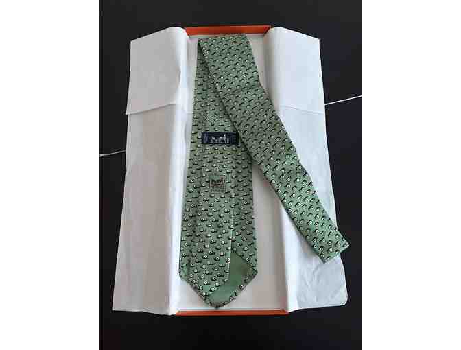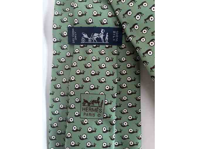 Green Hermès tie with a design of tiny litte cute snails. New in box.