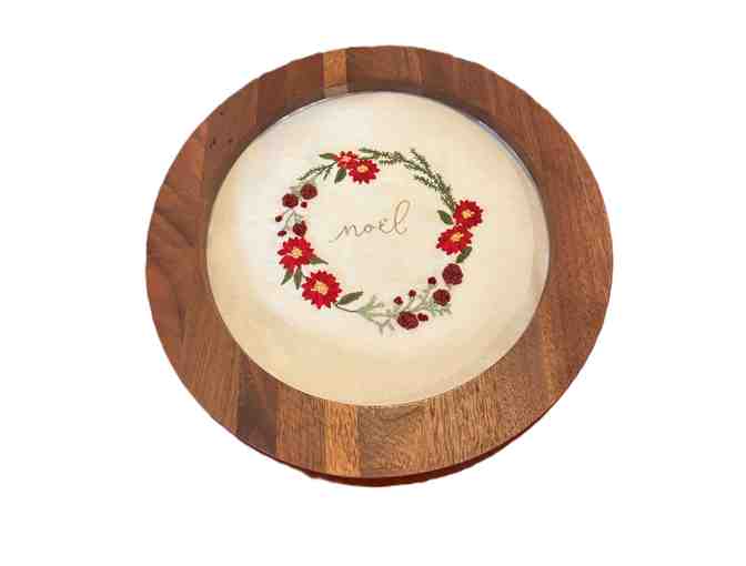"Noel" Hand Embroidery in wooden frame by Barbara Anne Carey for the San Francisco Boys Chorus