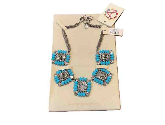 Arita Design Turquoise colored & Rhinestone Costume Jewelry Necklace in decorative basket