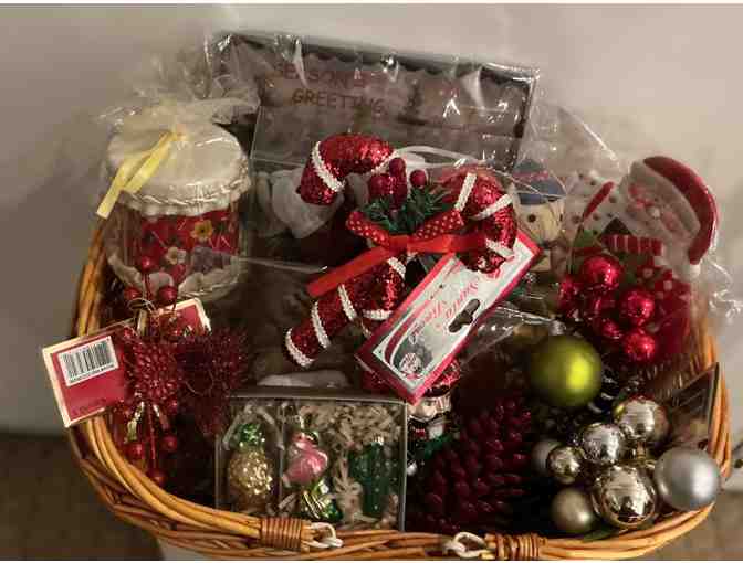Santa Cookie Tray, Santa Door Decoration, collection of straw ornaments, collection of traditional blown ornaments, drum ornament, traditional balls, package decorations, pine cones.
