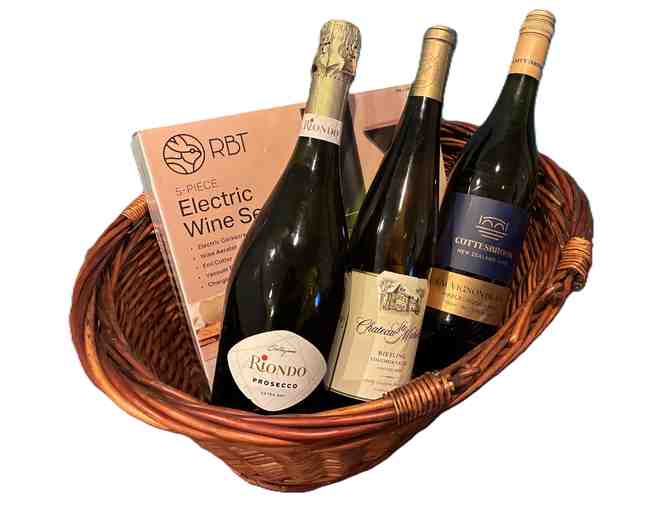 Wine Basket 3 White Wines and RBT Electric Wine Set