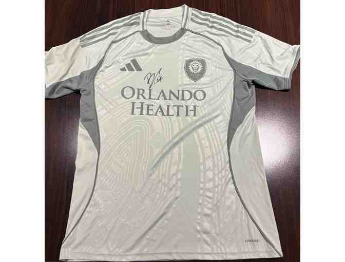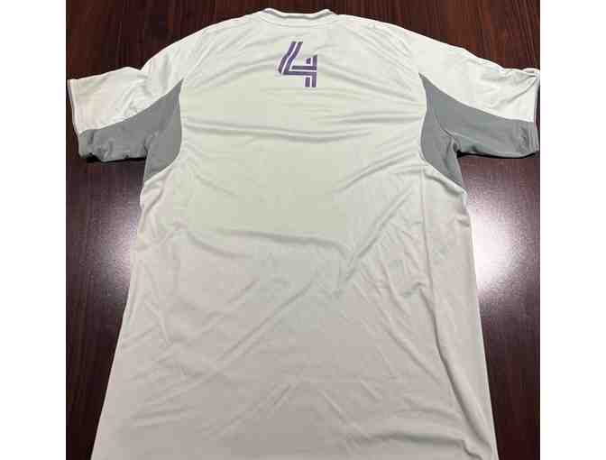 The pre-match top is a size large. Orlando City wore these pre-match tops during warm-up before the match on April 26th against Atlanta FC at Inter&Co Stadium.