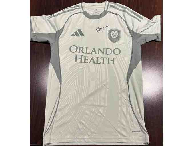 The pre-match top is a size large. Orlando City wore these pre-match tops during warm-ups before the match on April 26th against Atlanta FC at Inter&Co Stadium.