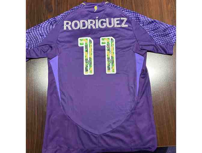 The jersey is a size medium and features camouflage numbers. Orlando City "Military Appreciation Night" jerseys were worn July 12, 2025 vs CF Montreal during an 1-1 decision for Orlando City at Inter&Co Stadium.