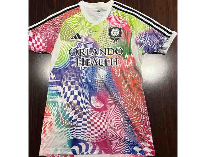 The pre-match top is a size small. Orlando City wore these pre-match tops during warm-up before the match on June 28th against FC Cincinnatti at Inter&Co Stadium.