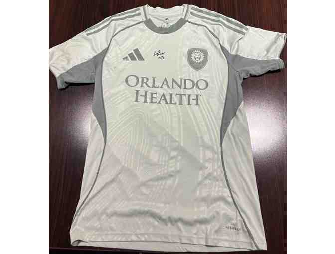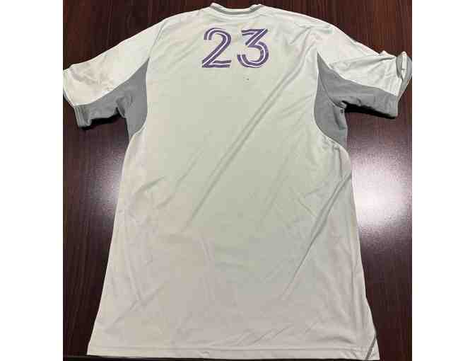 The pre-match top is a size medium. Orlando City wore these pre-match tops during warm-up before the match on April 26th against Atlanta FC at Inter&Co Stadium.