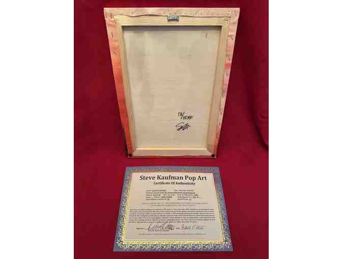 A vibrant tribute to the pop princess herself by acclaimed artist Steve Kaufman (SAK), celebrated protégé of Andy Warhol. Kaufman’s bold use of color and signature pop-art flair capture the energy, charisma, and cultural impact of Britney Spears in this striking hand-embellished portrait.