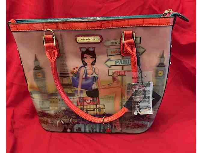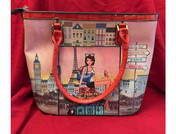 Very chic brand new with tags, Nicole Lee purse with storage bag - has a travel theme including Hollywood, Paris and Beverly Hills!