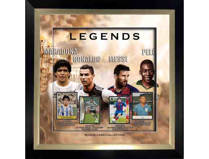 Soccer Legends replica rookie card collage - Messi, Ronaldo, Pele, Maradona