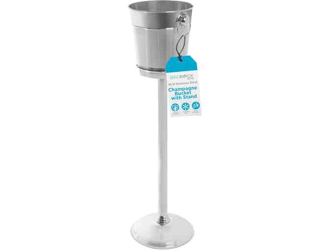 BirdRock Stainless Steel Champagne Bucket w/ Stand (32" free standing ice holder) and 750ml Vueve Clicquot with Ice Jacket