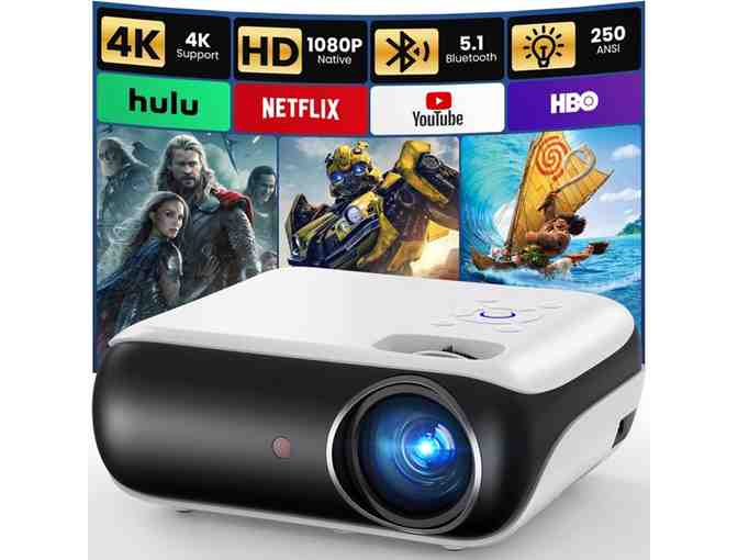 Happrun Native 1080P Bluetooth Projector, Full HD Portable Outdoor w/ Built in Speaker, Compatible with Smartphone, HDMI, USB, AV, Firestick, PSS for Home, Bedroom, Outdoor Use & Towond 150" Projector Screen & Stand, Portable screen with carry bag.