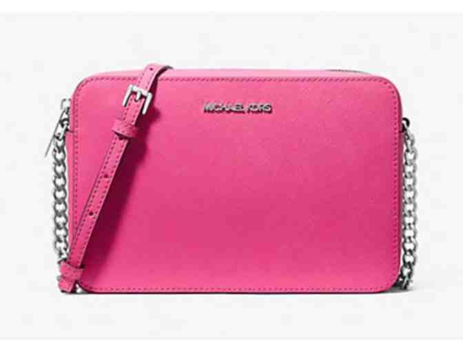 Michael Kors Jet Set Large Saffiano Leather Crossbody in color Dragonfruit