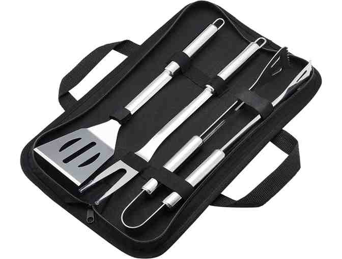 Amazon Basics 4-Piece Stainless Steel Barbeque Grilling Tool Set with Carry Bag