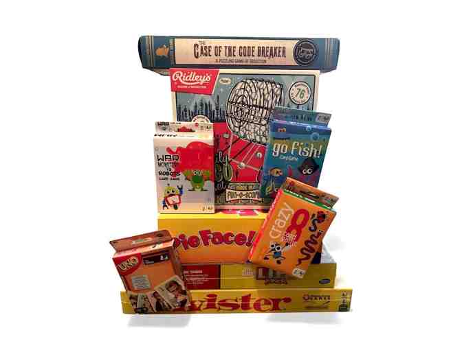 Twister, Family Bingo, Pie Face, Uno, Life Junior, The Case of the Code Breaker, Crazy 8's, Go Fish, Uno (Office edition), War Monsters vs Robots