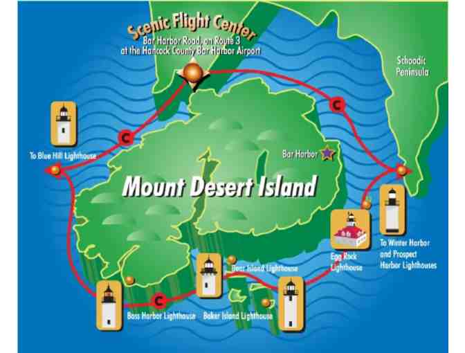 Two tickets on a Deluxe Lighthouse Scenic Flight around Acadia with Scenic Flights of Acadia.