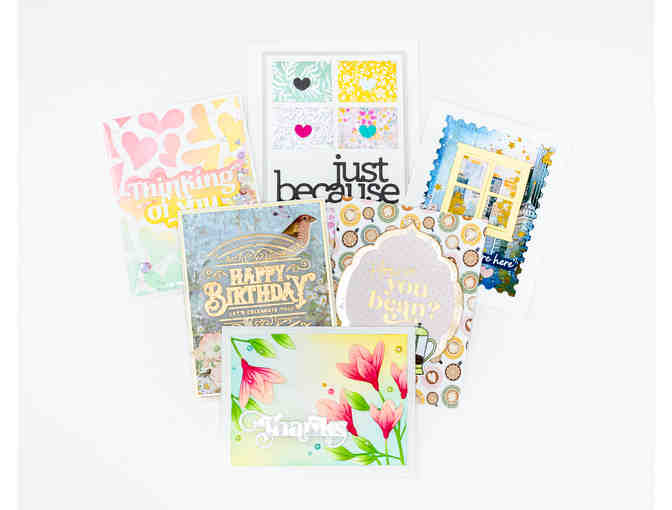 This beautiful set of 6 Handmade cards include: one 5x7 sized card, and five 4.25 x 5.5 sized cards, each with their own unique design.