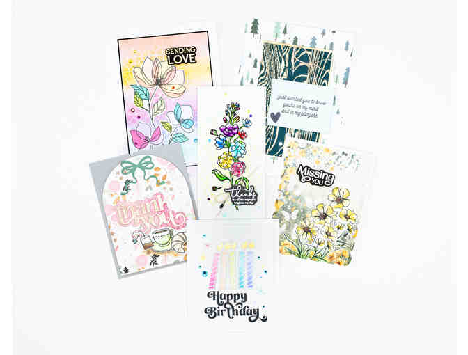 Send a thank you, wish a friend "Happy Birthday" or tell someone you are thinking of them with this set of 6 Handmade Cards by Nina-Marie Trapani.