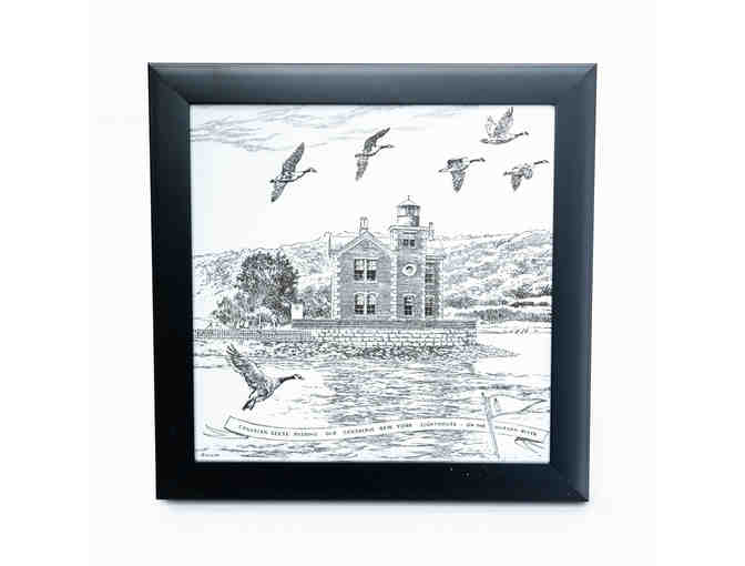 From the original pen and ink illustrations by artist John F. Gould this framed 6x6 print of the Old Coxsackie Lighthouse would make a great addition to your lighthouse collection!