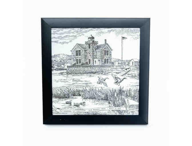 From the original pen and ink illustrations by artist John F. Gould this framed 6x6 print of the Old Kingston Lighthouse would make a great addition to your lighthouse collection!