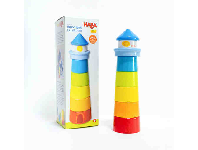 The Lighthouse Stacking Game from HABA is sure to be a hit with your little one! This gorgeous, German-made toy has a classic, minimalist design for which HABA is known. The colorful sections have little pivots that latch easily into the holes underneath, making stacking simple and fun. Stacking is important in fostering motor skills and hand-eye coordination. The bright, cheery colors keep little ones interested and engaged.