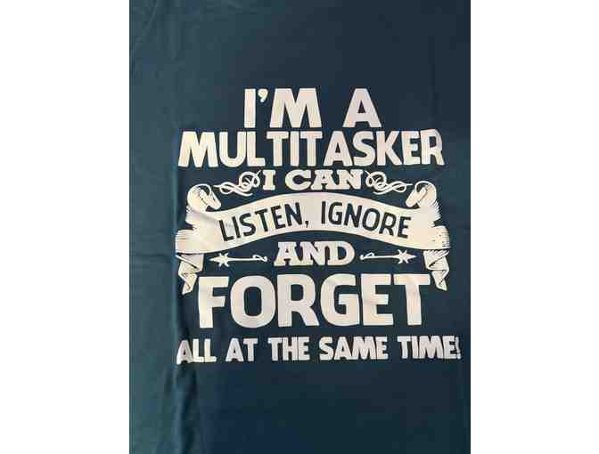 XL novelty t - shirt teal with "I'm a multitasker I can listen, ignore, and forget all at the same time"