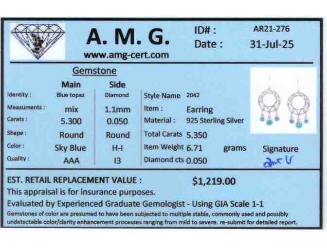 Bid now to win these Blue Topaz & Diamond Rhodium Designer Earrings!