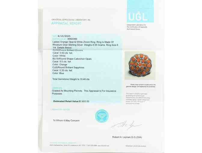 Bid now to win this New 10.40 CTW Orange Opal & White Zircon Ring