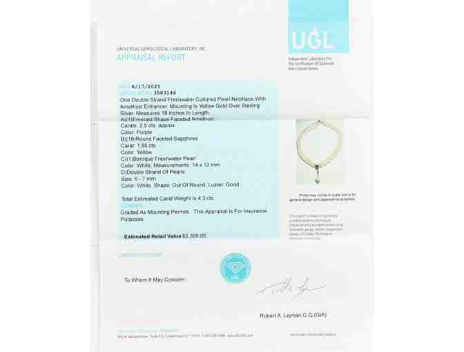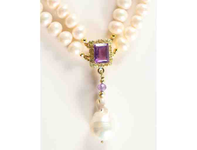 Bid now to win this New Freshwater Cultured Pearl Necklace with 4.3 CTW of Amethyst & Sapphire